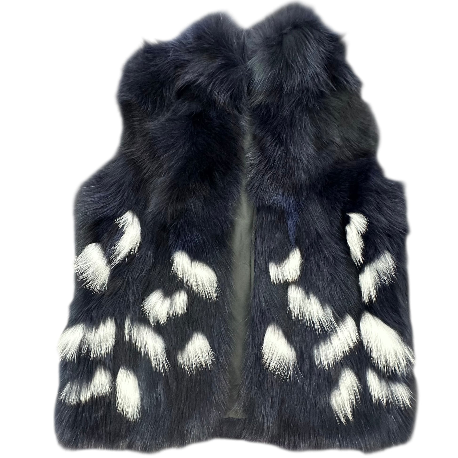 ALBERTO MAKALI NAVY FAUX FUR VEST 6 MEDIUM