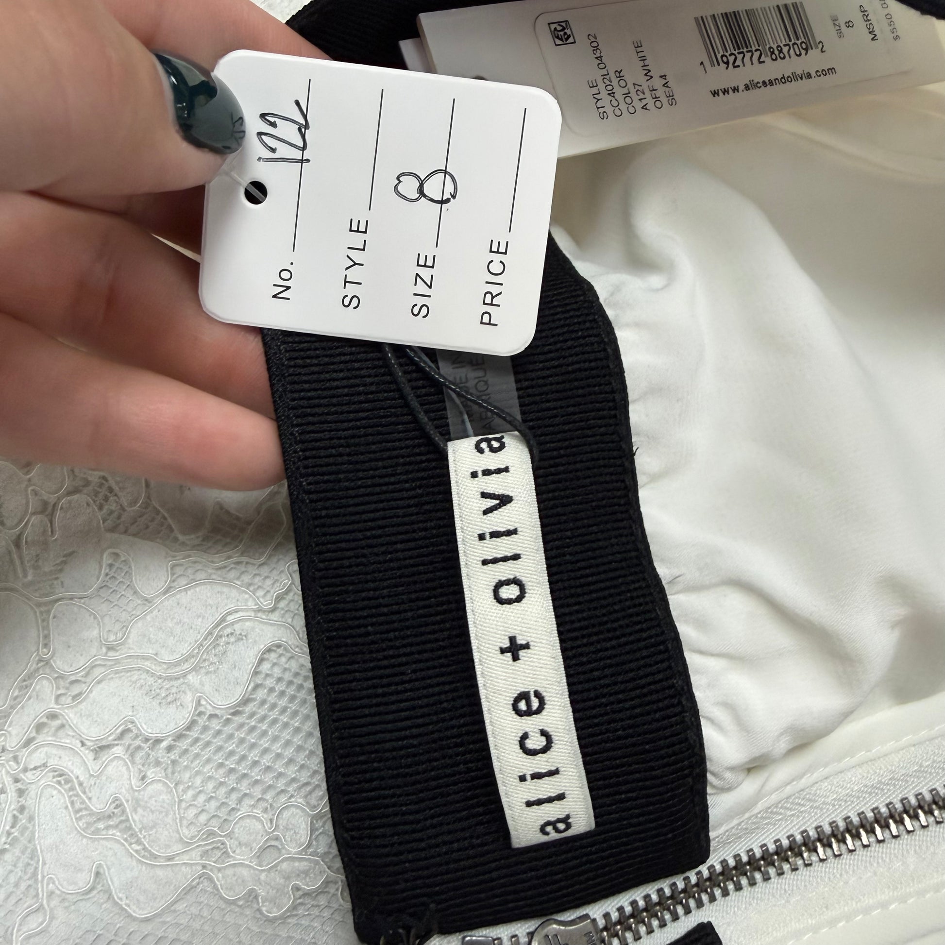 ALICE + OLIVIA WHITE LACE TEA LENGTH SKIRT 122 NWT $550 SZ 8