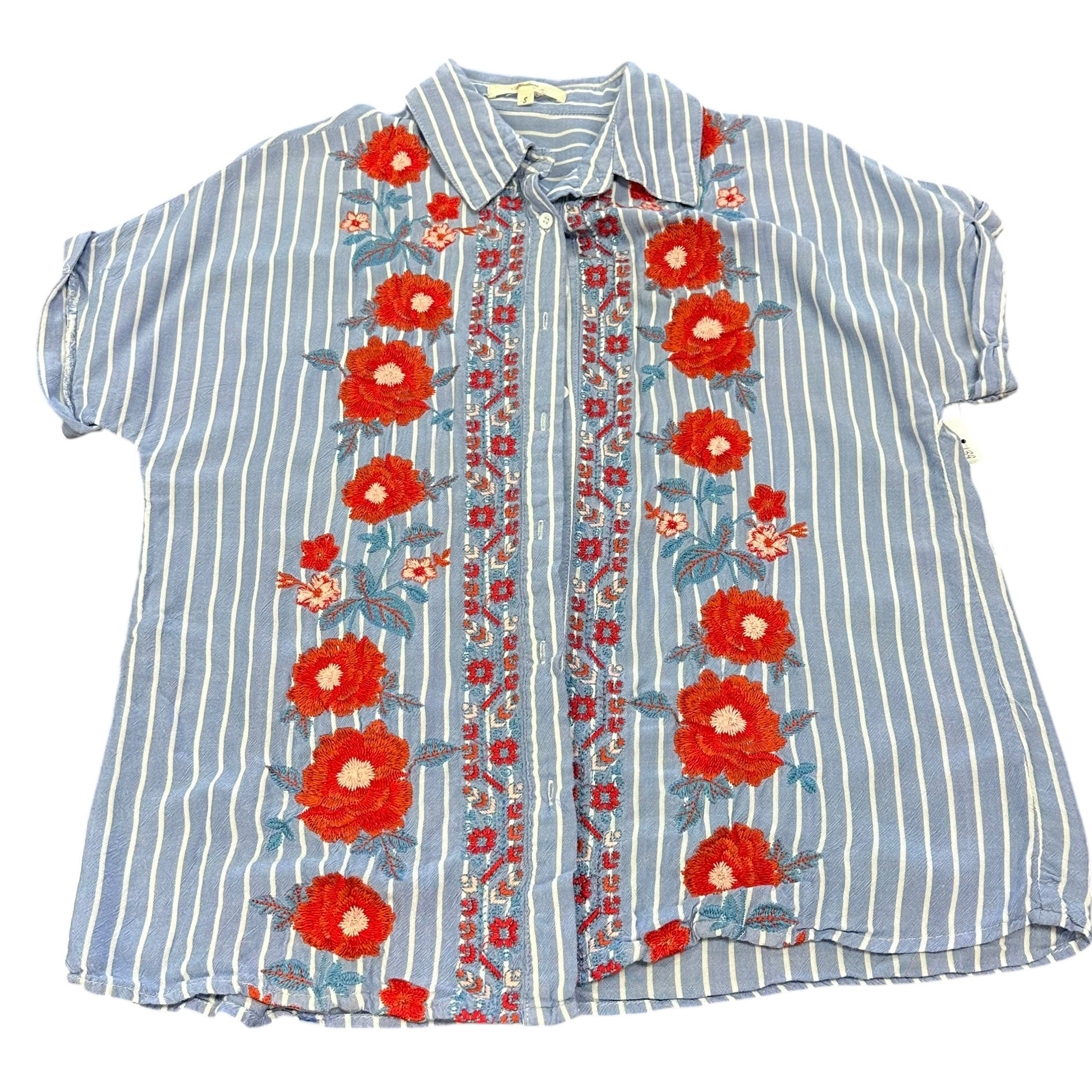 ANDREE BY UNIT STRIPED EMBROIDERED BLOUSE 139 SMALL