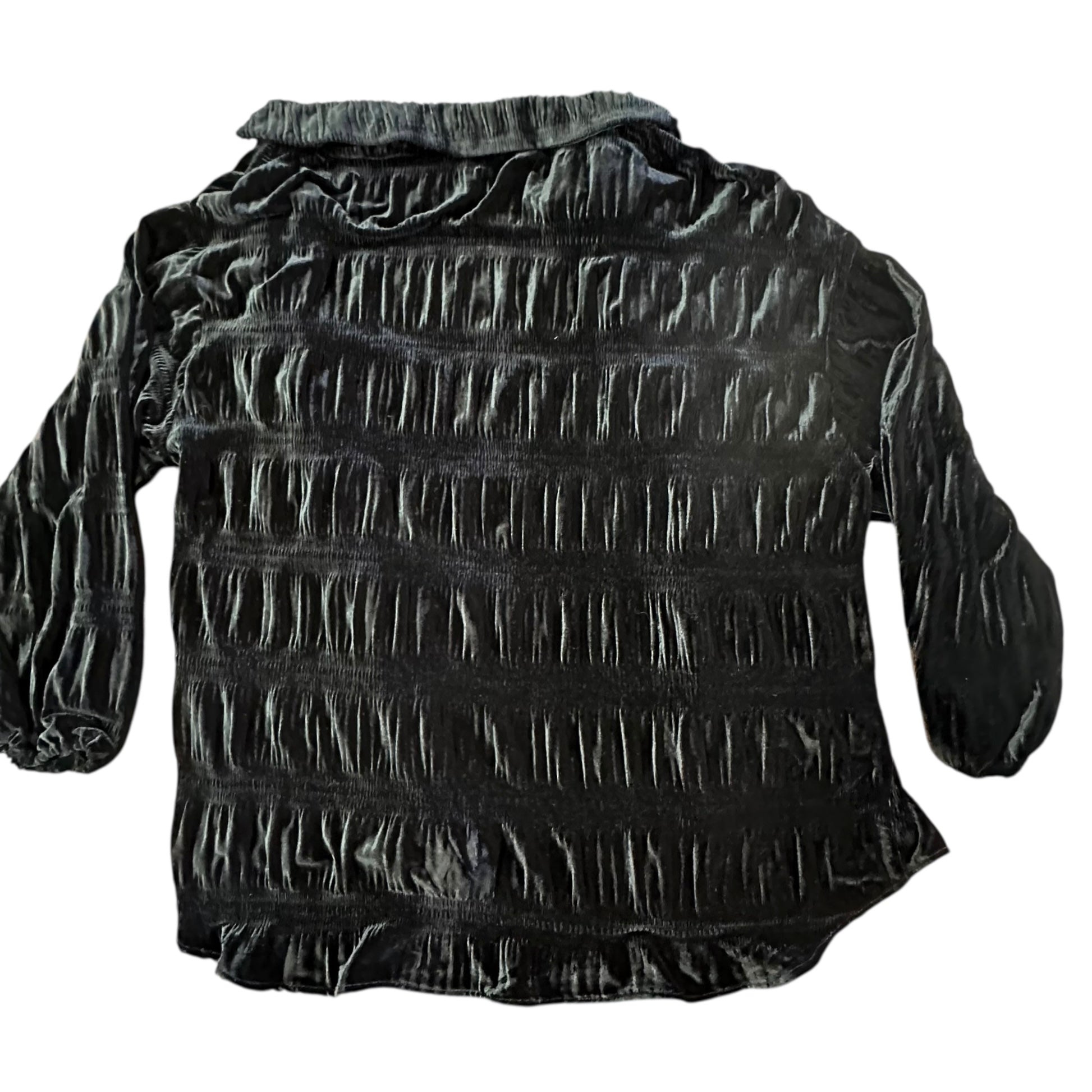 BIBI BLACK VELOUR BUTTON UP BLOUSE 7 XL