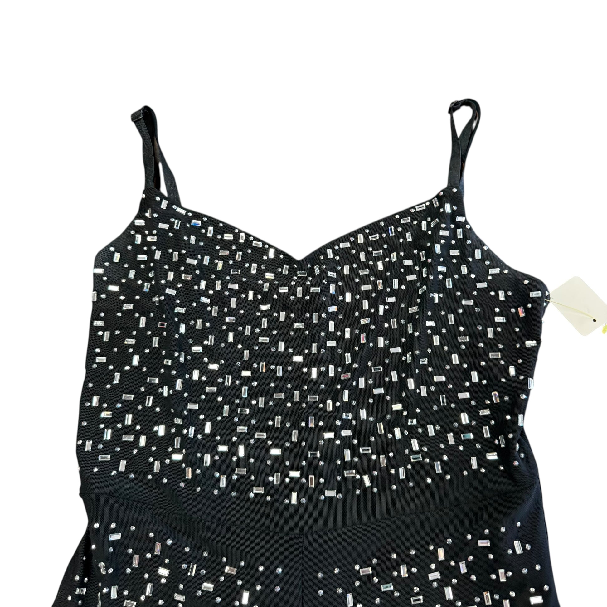 BLACK JUMPSUIT MESH RHINESTONE CORSET 223 LARGE