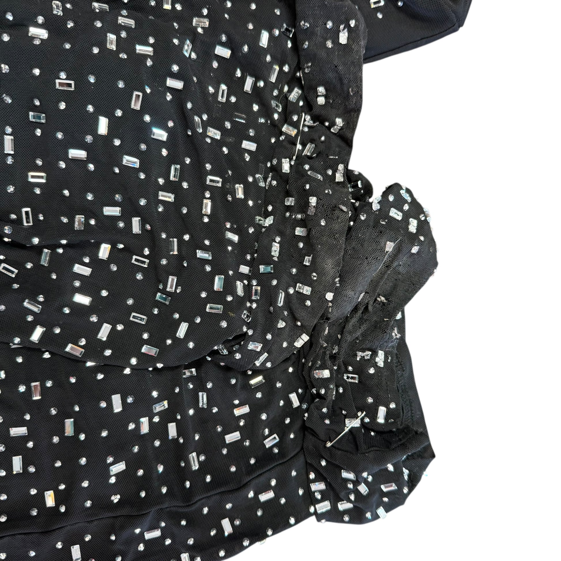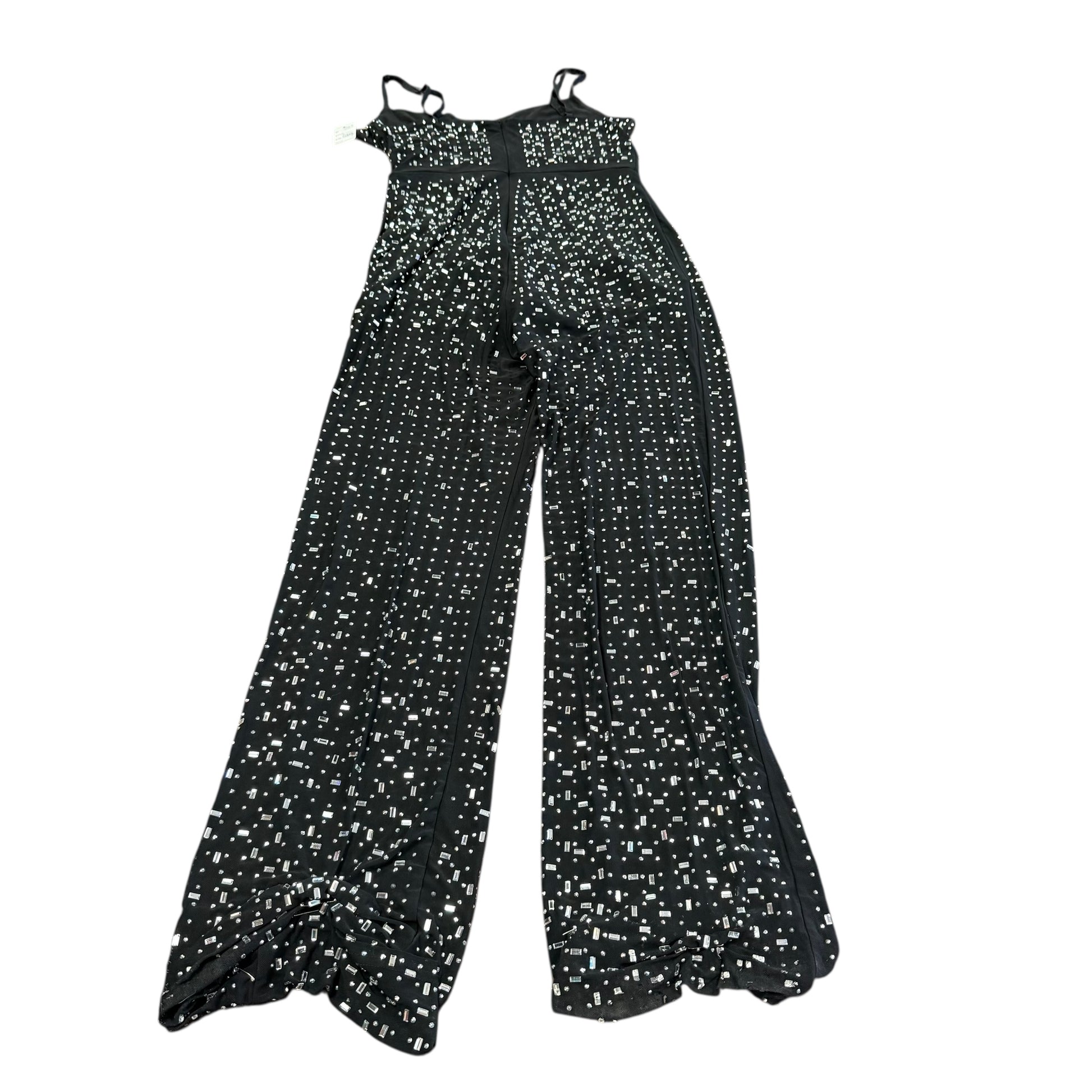 BLACK JUMPSUIT MESH RHINESTONE CORSET 223 LARGE *WEAR BOTTOM HEM