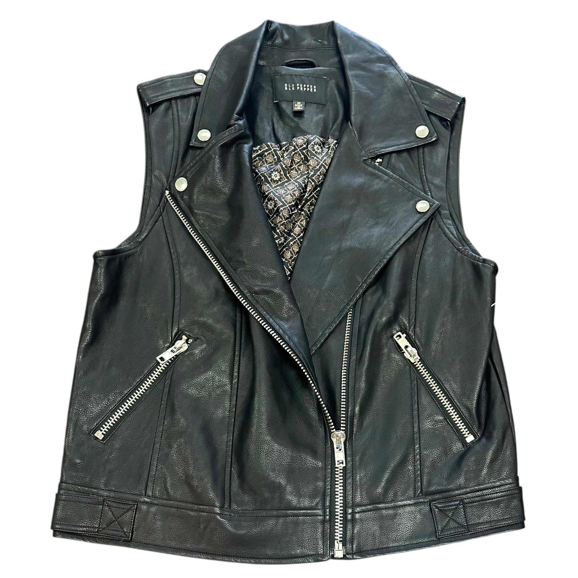 BLU PEPPER BLACK FAUX LEATHER VEST 124 MEDIUM