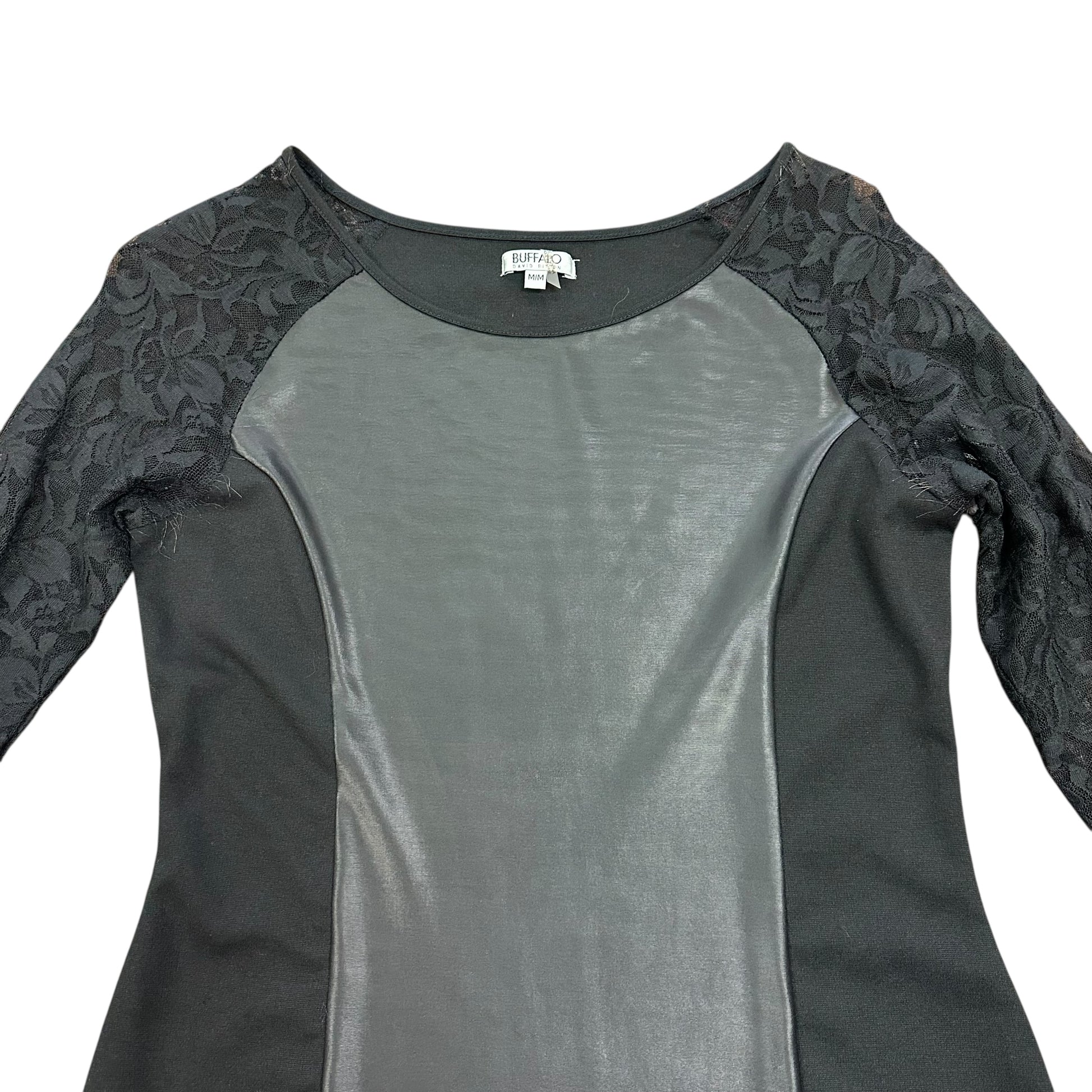 BUFFALO BLACK FAUX LEATHER DRESS W LACE SLEEVES 143 MEDIUM