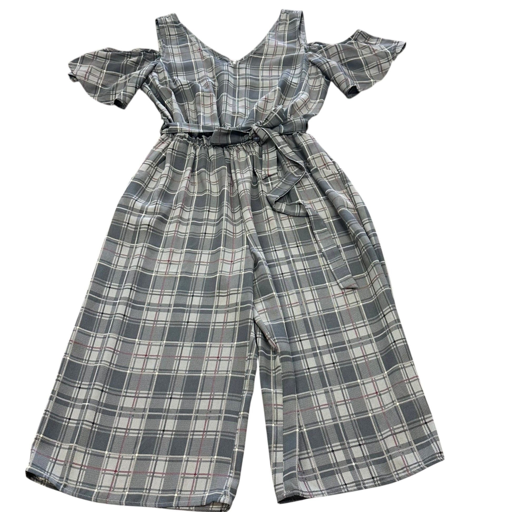 CHARMING CHARLIE GRAY PLAID CROPPED WIDE LEG JUMPSUIT 234 LARGE