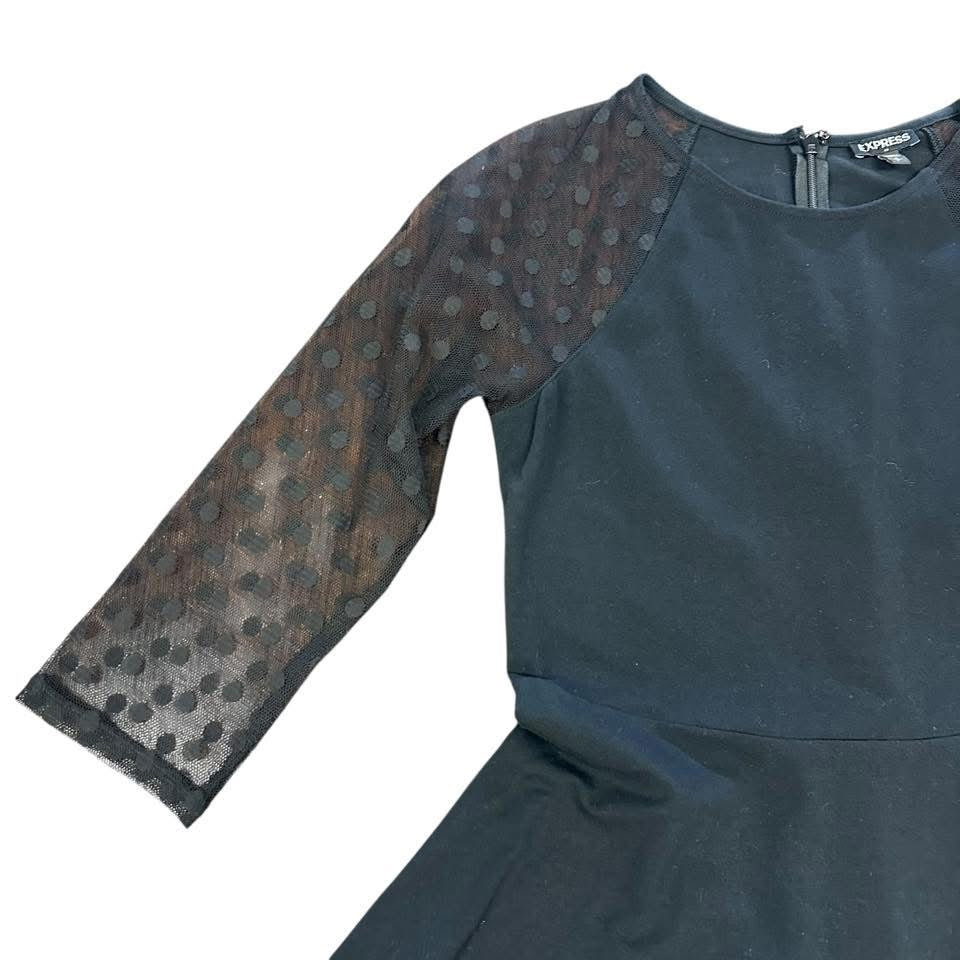 EXPRESS BLACK FIT FLARE DRESS W MESH SLEEVES 143 SMALL