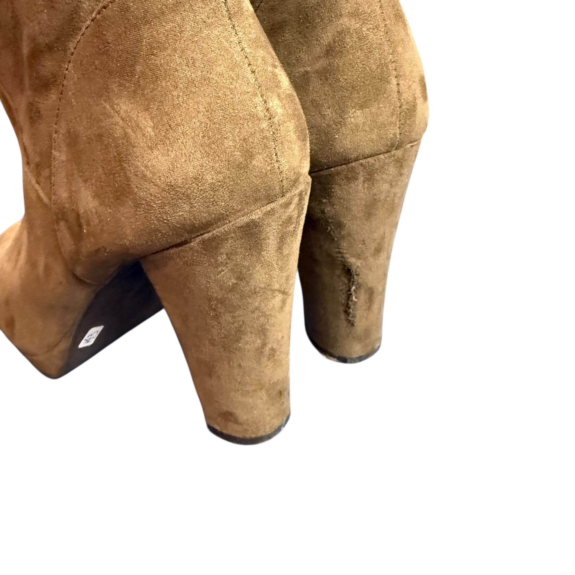 FOREVER21 BROWN FAUX SUEDE HEELED KNEE HIGH BOOTS SZ 7