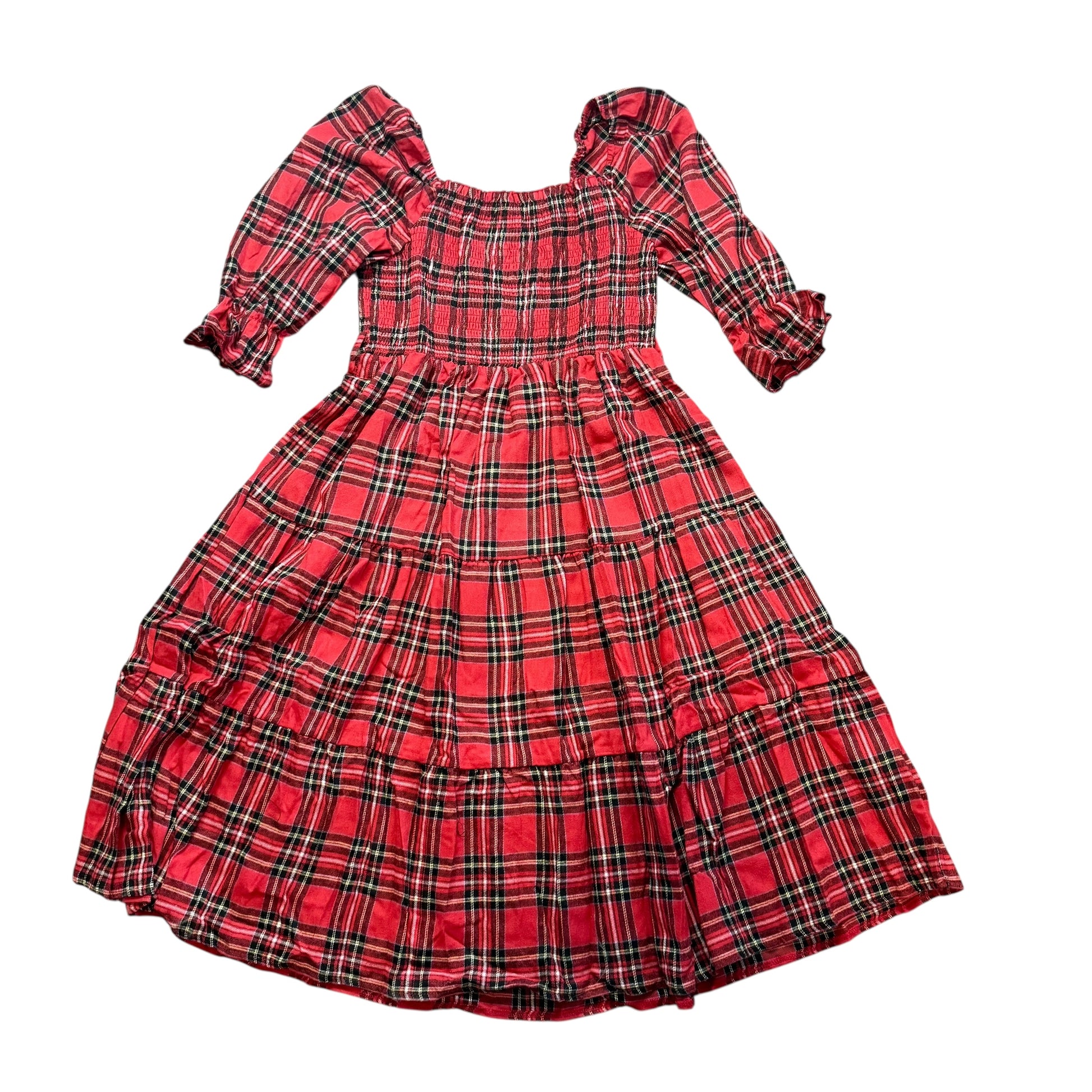HOLIDAY PLAID SMOCKED TIERED DRESS BELTED NWOT 100 LARGE