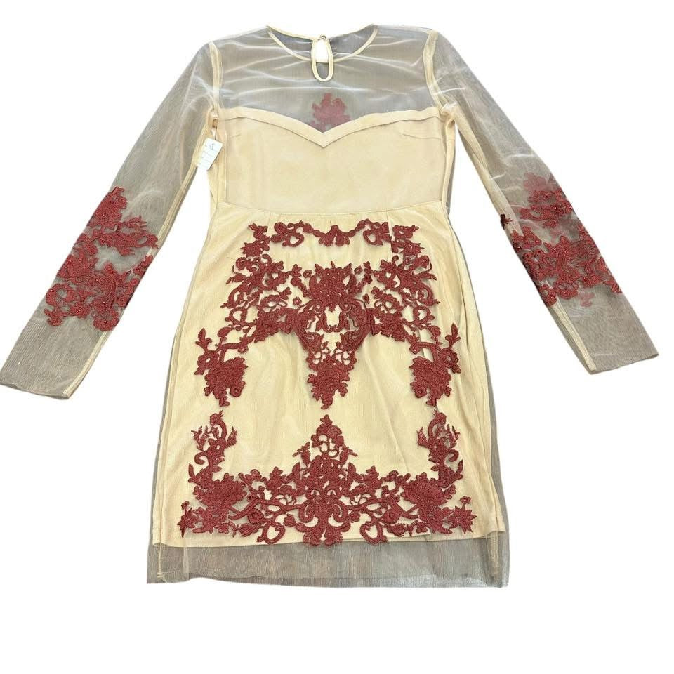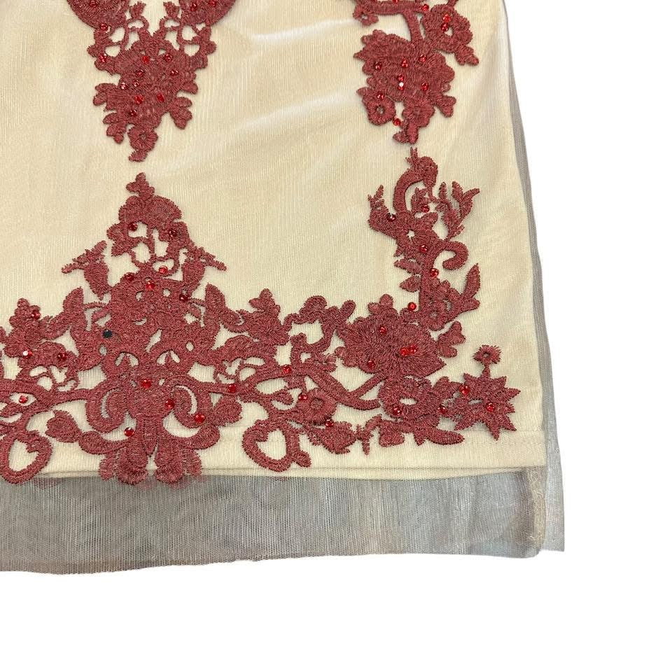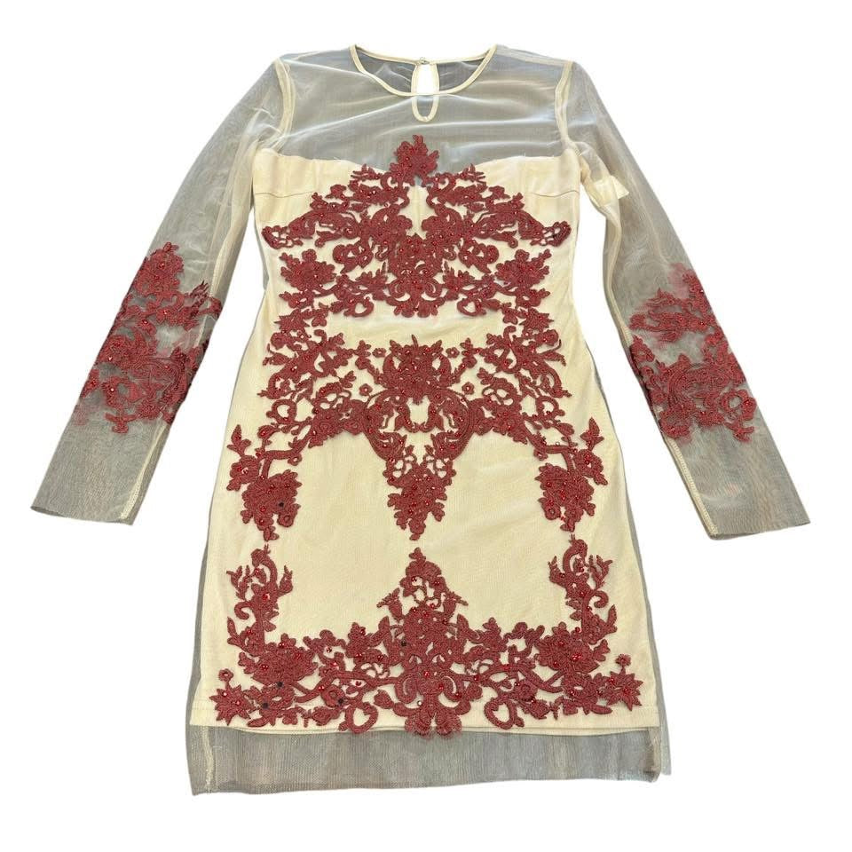L’ATISTE BODYCON BEIGE MESH EMBELLISHED DRESS 143 MEDIUM