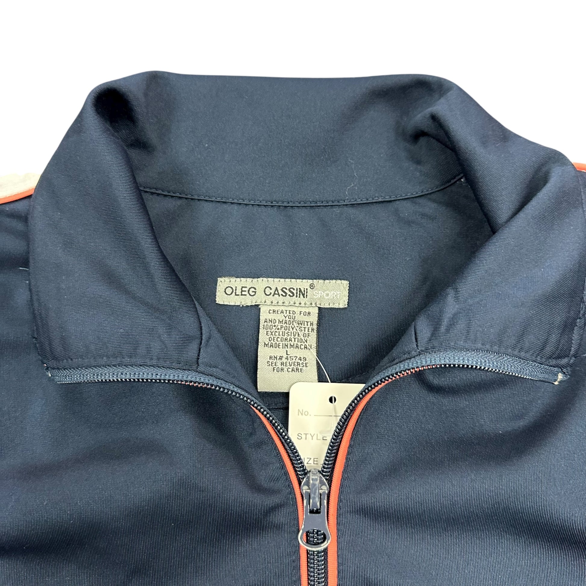 OLEG CASSINI SPORT TRACK JACKET FULL ZIP NAVY WHITE STRIPED SLEEEVES 15 LARGE *SPOT