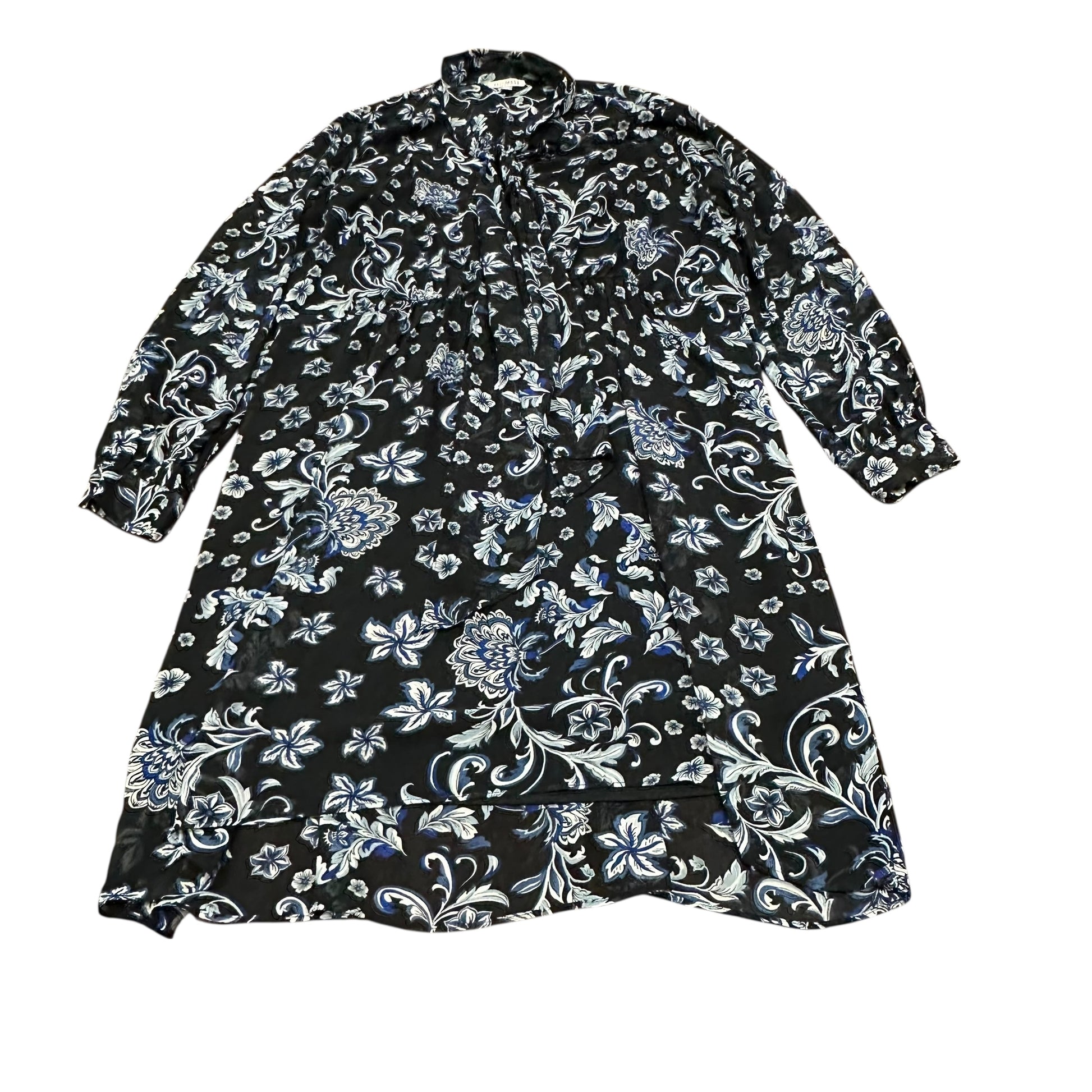 ROZ & ALI BLACK WITH BLUE FLOWER DESIGN LONG SLEEVE DRESS16 Sz 20