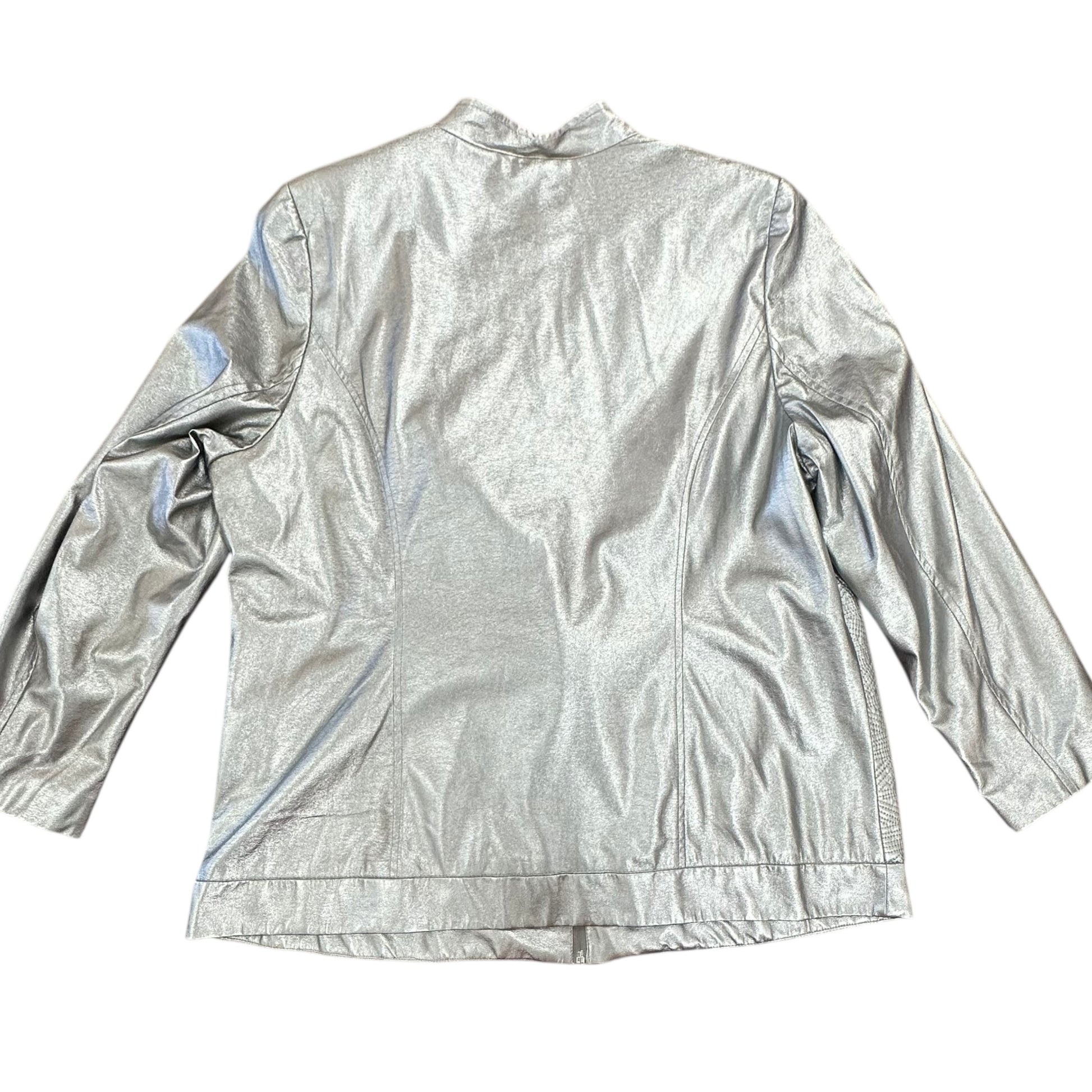 TANJAY SILVER EMBROIDERED FAUX LEATHER JACKET 219 SZ 18W