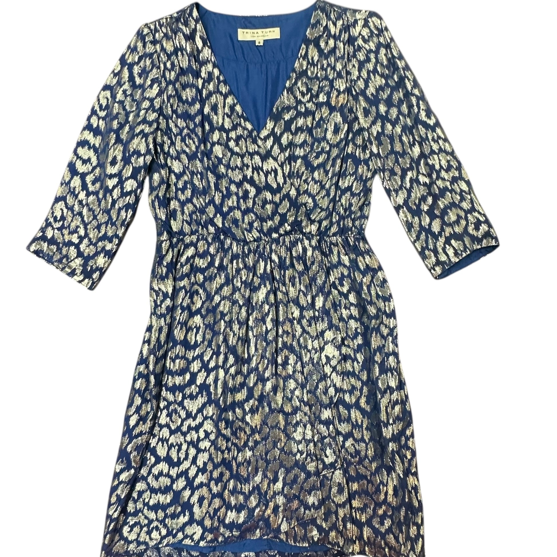 TRINA TURK BLUE SILVER ANIMAL PRINT DRESS 241 SZ 8