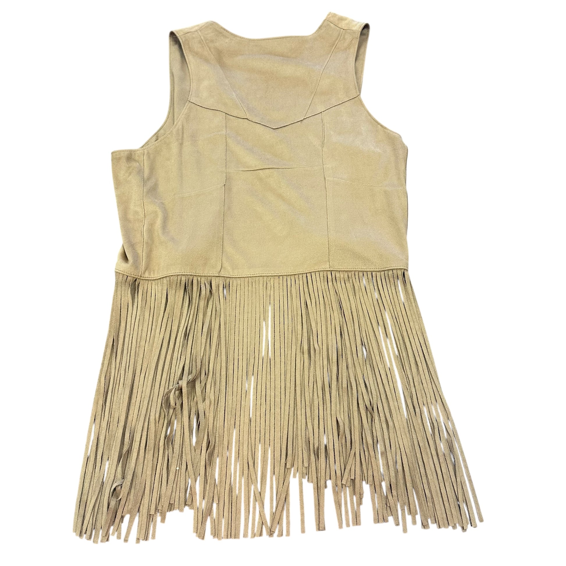 TURQUOISE HAVEN FAUX SUEDE BROWN VEST FRINGE 124 LARGE
